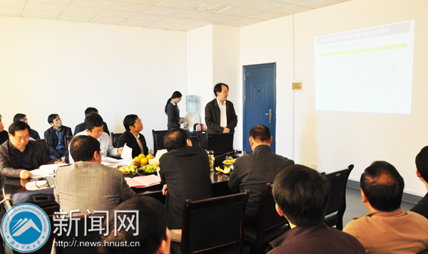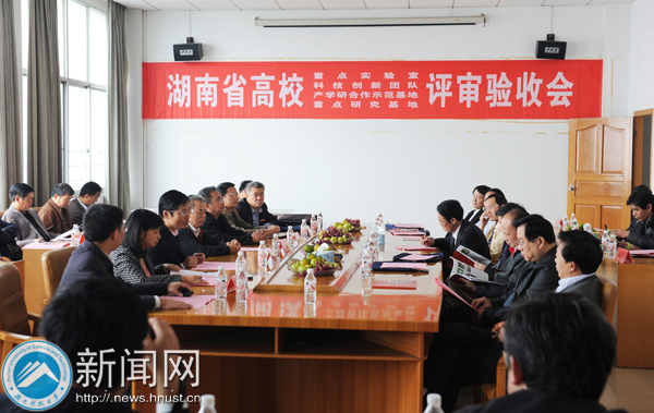 10月8日上午,省教育厅专家组莅临我校,对我校2008年申请立项建设的湖南省高校重点实验室、科技创新团队、产学研示范基地和重点研究基地进行考核、验收。总体验收会在南区图书馆9楼会议室举行。教育厅副厅长申纪云、科技处处长左清及考核验收专家组全体成员,校领导田银华、刘德顺、刘建武、冯涛、刘友金出席。科技处、学科处、社科处相关人员参加。